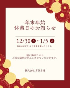 HOME > お知らせ > 🎍年末年始 休業日のお知らせ🎍
